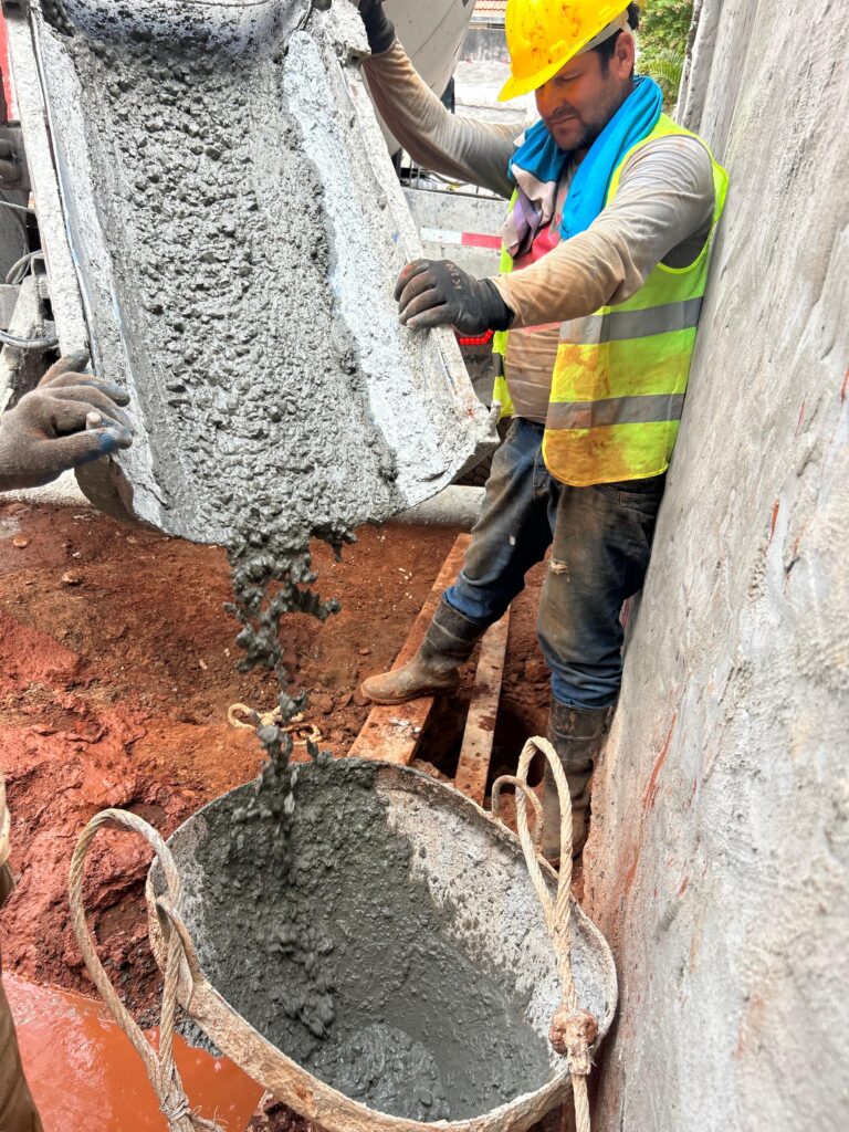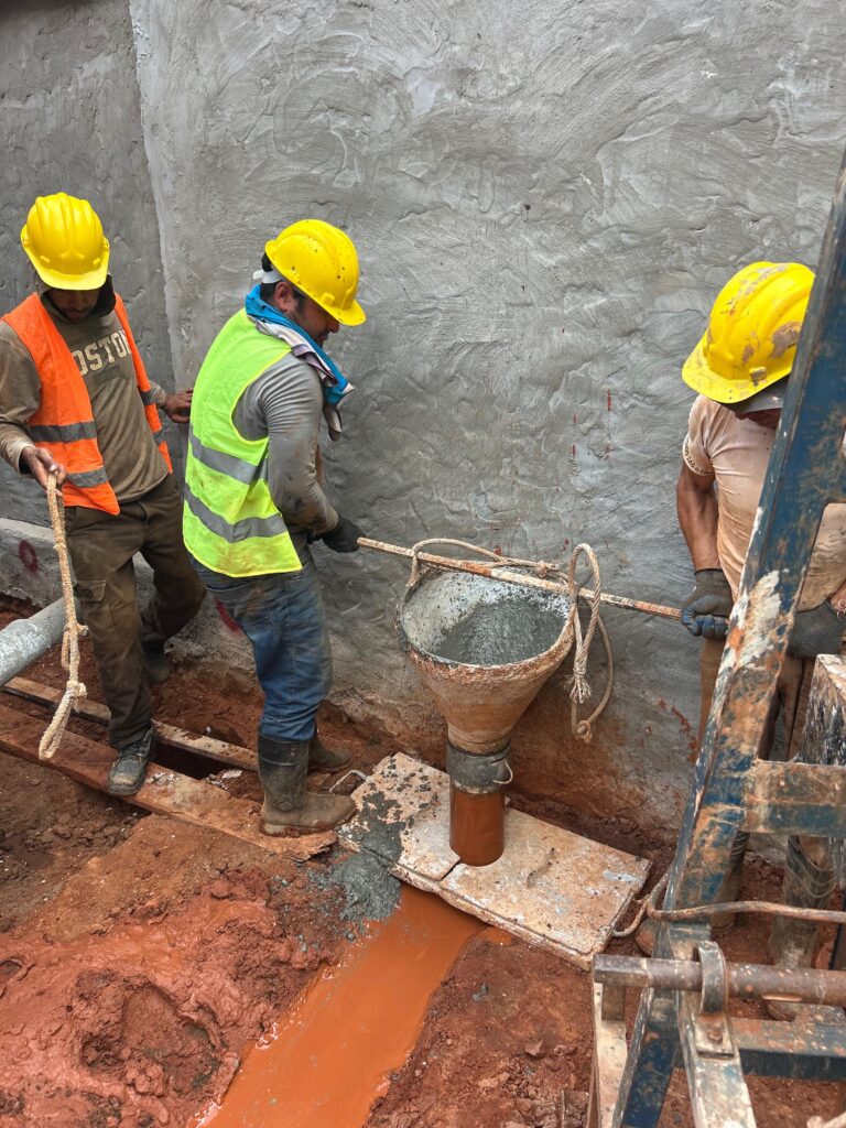Esta etapa corresponde a la ejecución de los pilotes que permitirán asegurar la estabilidad del terreno y contener las cargas laterales, preparando el sitio para las siguientes fases estructurales del proyecto. Se trata de un trabajo técnico fundamental que se desarrolla en las primeras etapas de obra y que no siempre es visible desde el exterior, pero resulta determinante para el correcto desarrollo del edificio.