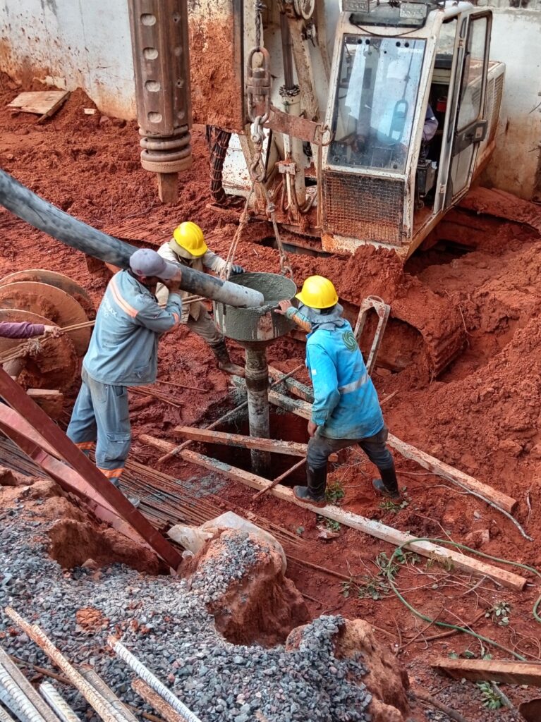 En paralelo, los pilotes de gran diámetro alcanzan un 87 % de avance, reflejando un ritmo de obra consistente y alineado con la planificación establecida. Este tipo de fundación es clave para garantizar la estabilidad y seguridad de la estructura, especialmente en desarrollos de alta exigencia técnica.
