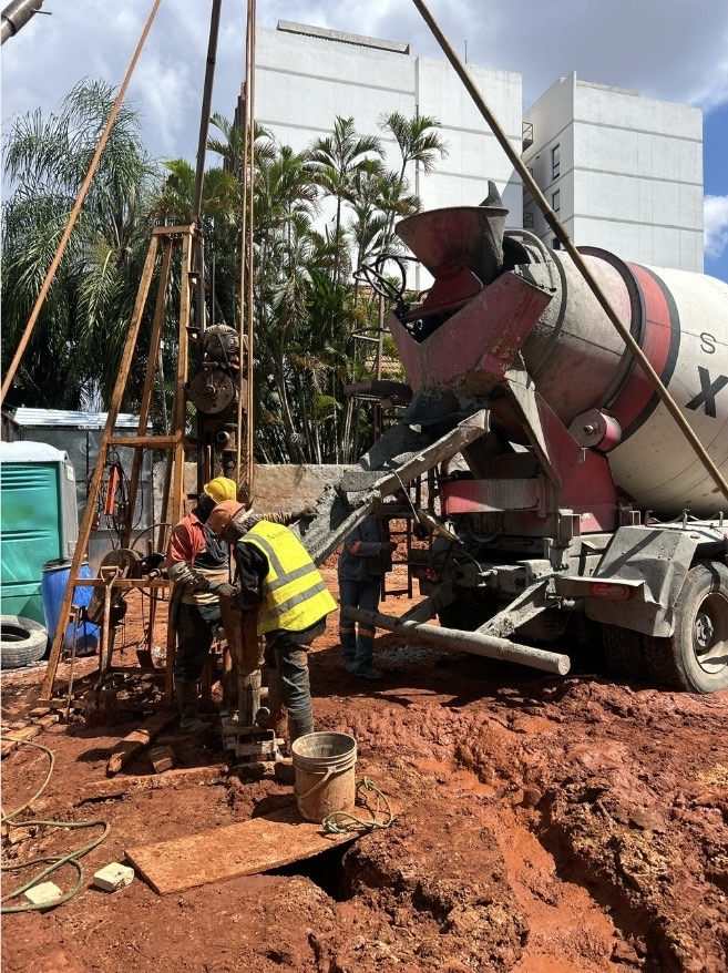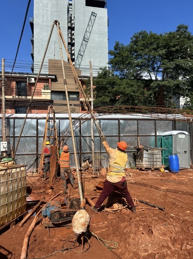 Asimismo, se ha iniciado la ejecución de pilotes de gran diámetro, elementos fundamentales dentro del sistema estructural del proyecto y que forman parte de la base sobre la cual se desarrollarán las etapas posteriores de la obra.